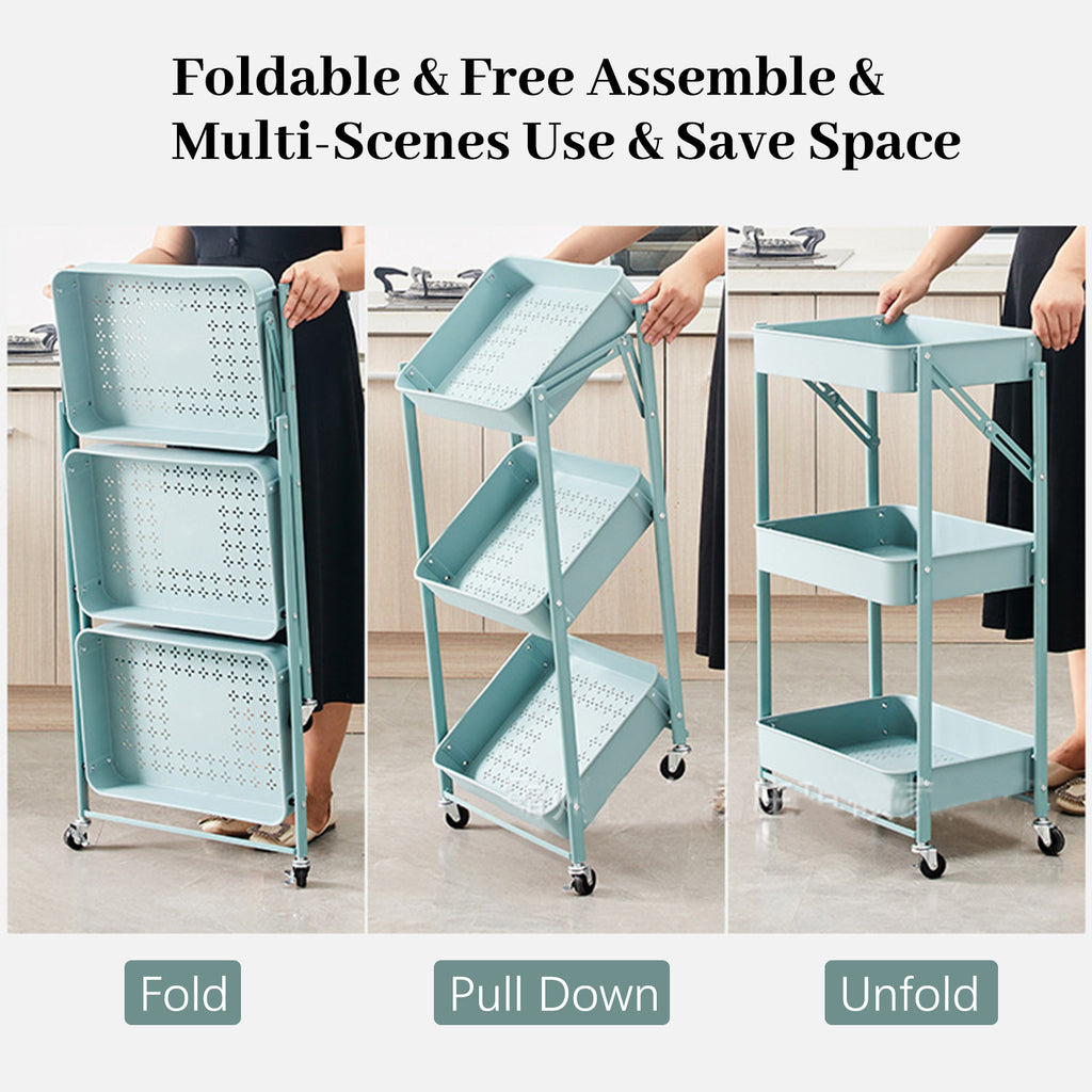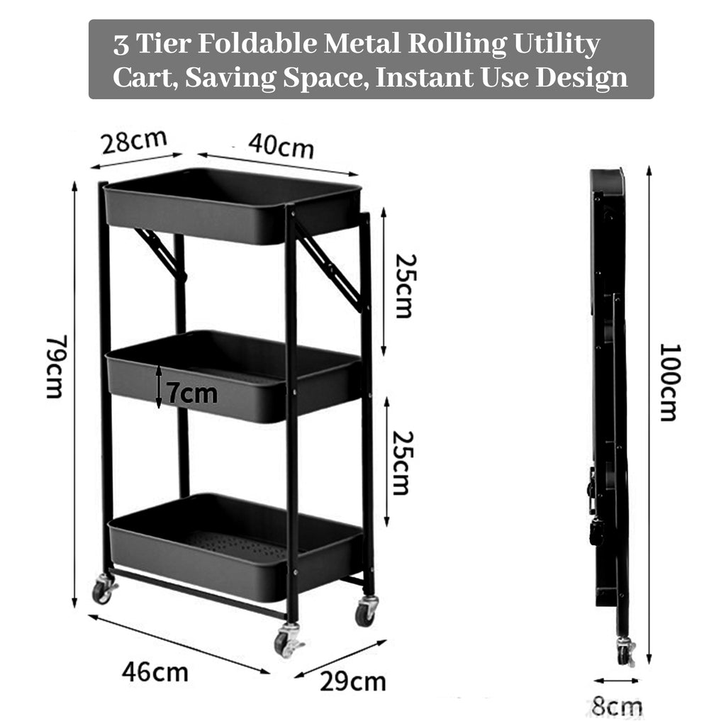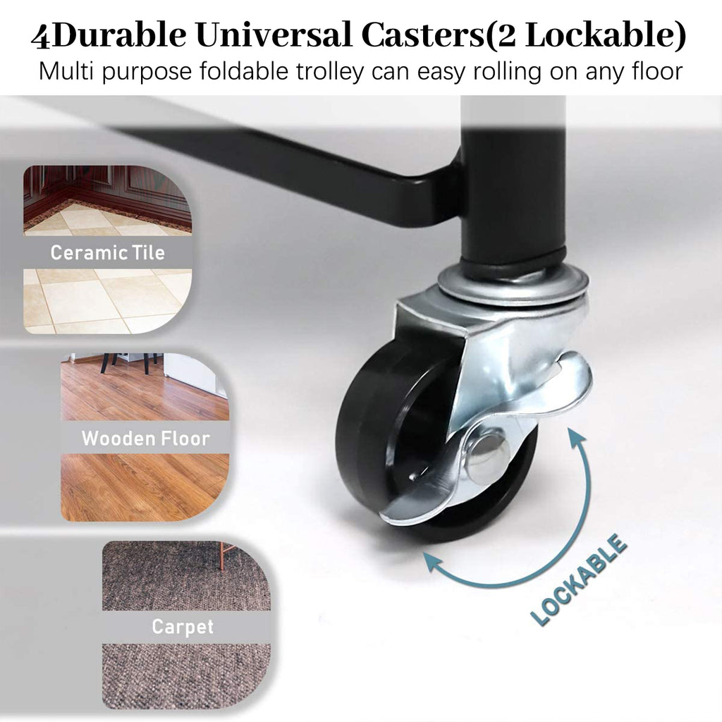 [Free Installation] Comes with instant use design, this rolling utility cart is already pre-assembled, skips complex assembling process. Also can be folded into vertical for saving space when doesn’t use, easily place in the corner of your room.