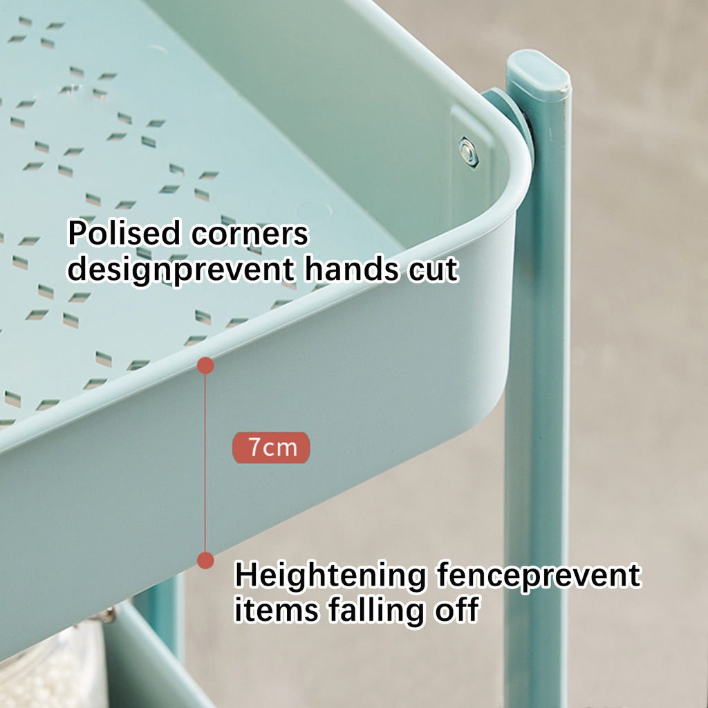Unique Design: The unique color and the holes basket design give the rolling cart a contemporary appearance. The plastic surface helps resist chipping or scratching. Hollow carved design basket-shaped shelves are good for drainage, easy to clean, not easy to grow mold.