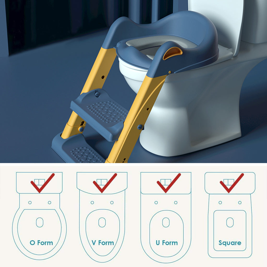 Blue Potty Training Toilet Seat Adjustable Step Stool Ladder for Toddlers Boys Girls Comfortable Safe Foldable Child Toilet Ladder with Anti-slip Pad