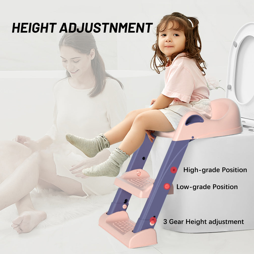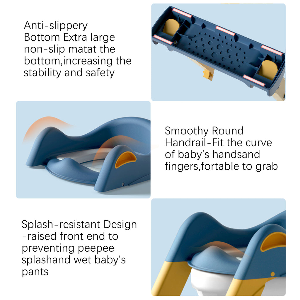【Safe and Stable】Non-slip bump design on the pedals enhances friction and prevents slipping, making the baby safer up and down. Anti-slip floor pads give a firm grip to the floor and secure the toilet seat against the toilet. No-slip handles provide support when children are seated.
