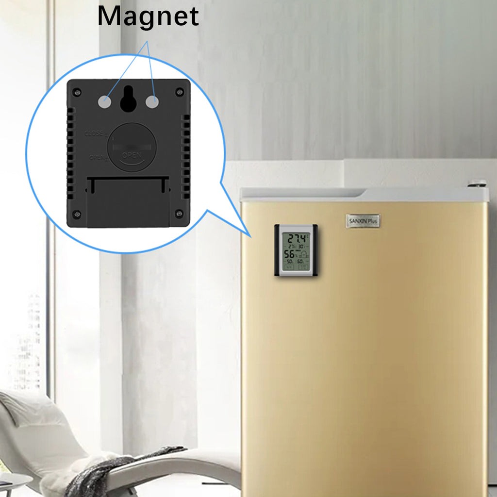 【Multiple Mounting Options】Indoor thermometers feature a tabletop stand to place the monitor on your table. The dual magnet design and hanging hole on the back allows it to be firmly attached to the metal surface or hang it at the wall.
