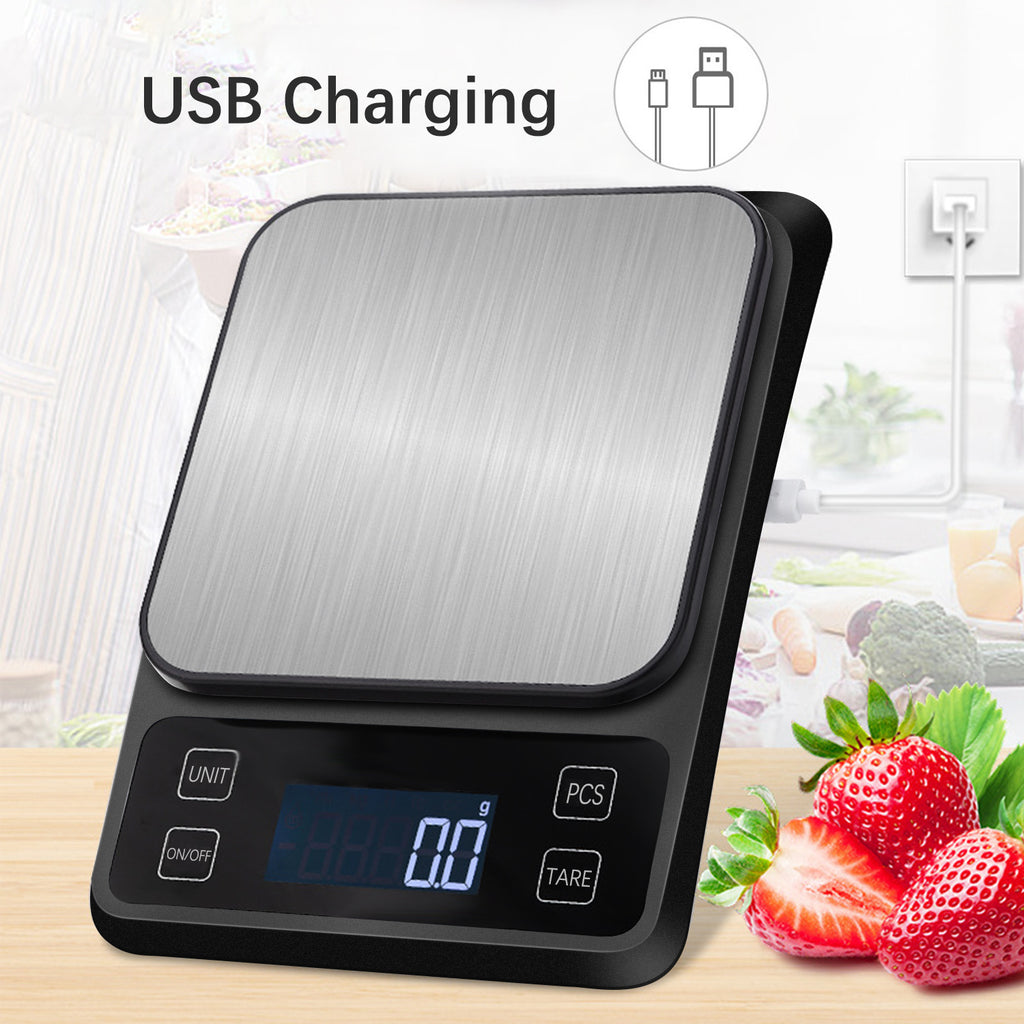 【Mutifunctional Scale】Powered by 3 AAA 1.5V batteries, with USB charging function. It comes with a tare and auto-zero functions and unit conversion function. You can quickly convert units between kg,g, lb, oz, tl, ml.