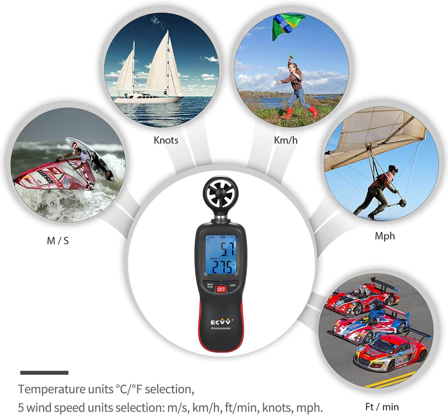 [WIDE RANGE OF APPLICATIONS] This wind speed tester is very small and light. the windspeed anemometer is an ideal tool for windsurfing, sailing and kite flying. You can also use the handheld wind speed anemometer for industrial and home purposes such as measuring speed and temperature of CPU computer fans, air-conditioners, airflow over the roof or walls.