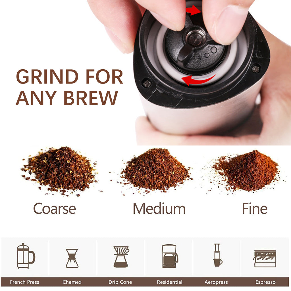 【Adjustable Grinder】The manual coffee grinder can provide precise grinding control from coarse powder to fine powder, perfect for any type of brewing method. You just simply rotate the grinder anticlockwise or anticlockwise.