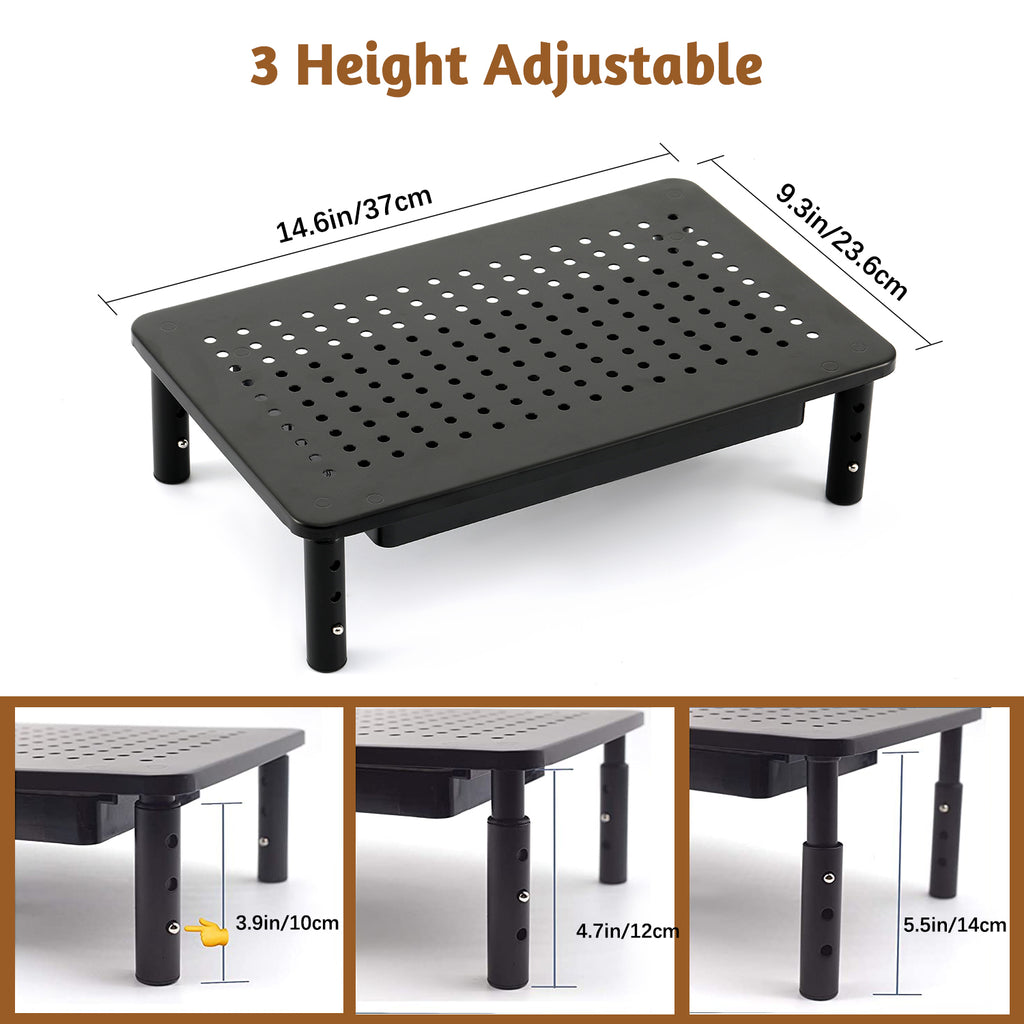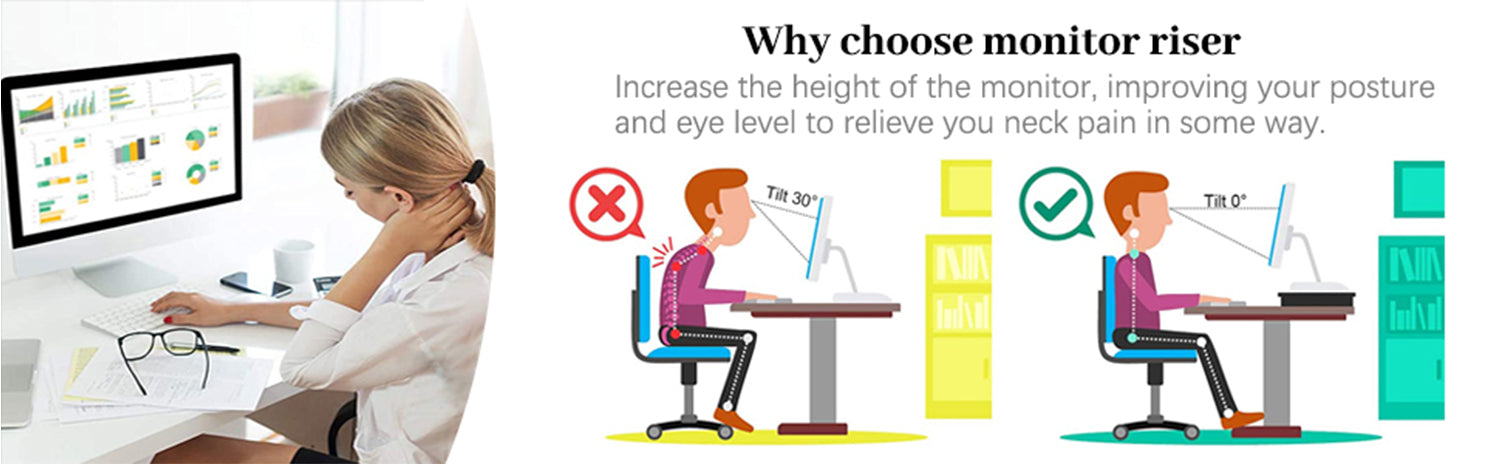 【Ergonomic Monitor Stand Riser】With 3 adjustable height levels-3.9',4.7'&5.5', you can choose the most ergonomic, healthiest and most comfortable viewing angle. You will notice the difference right away. Stay comfortable and get more done.
