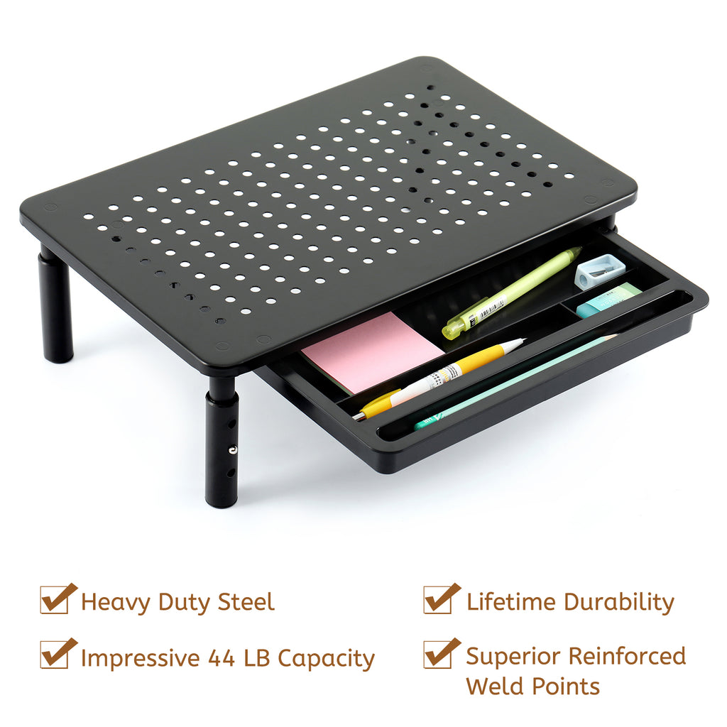 【Extra Storage Space】The platform comes with a plastic drawer that allows you to organize your supplies in the drawer or just put it underneath the computer stand. Minimizes the messy clutter and saves your valuable desktop space.