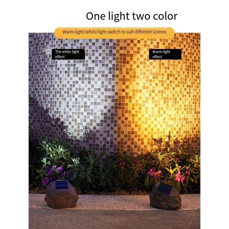 Solar Outdoor Lamp Courtyard Garden Layout Stone Small Decoration Lawn Landscape Waterproof Spotlight Simulation Basalt - 1 Set [white Light + Warm Light]