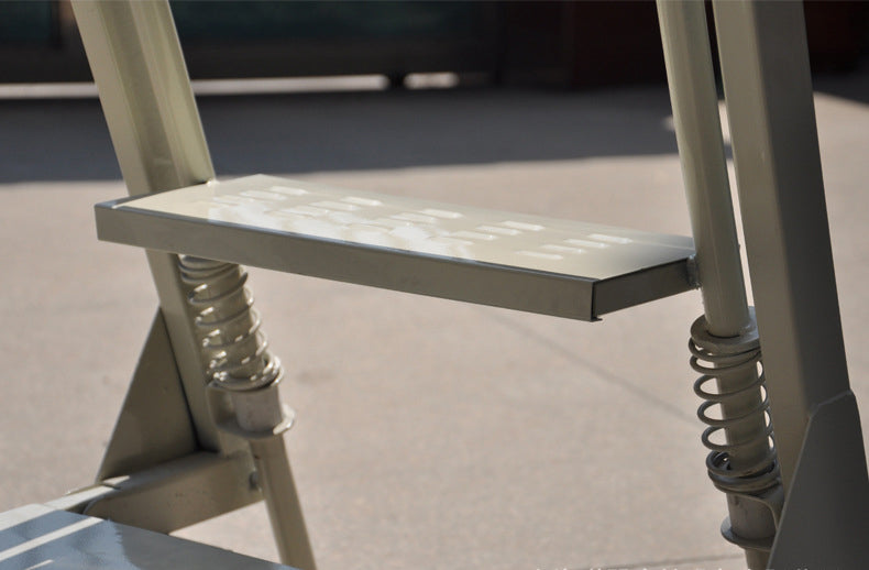 The pedal is movable. After a person stands up, the pedal rod is against the ground, so that the climbing car is firmly fixed in place, and the pedal automatically rises after the person leaves, which is convenient for moving the climbing car