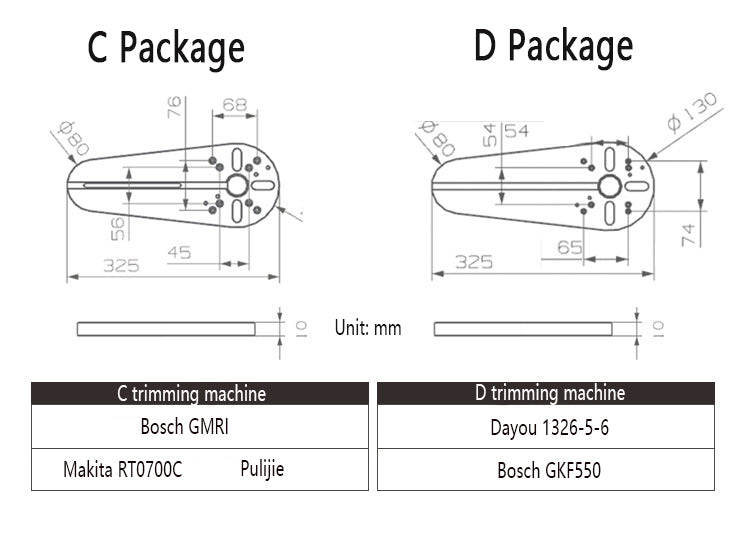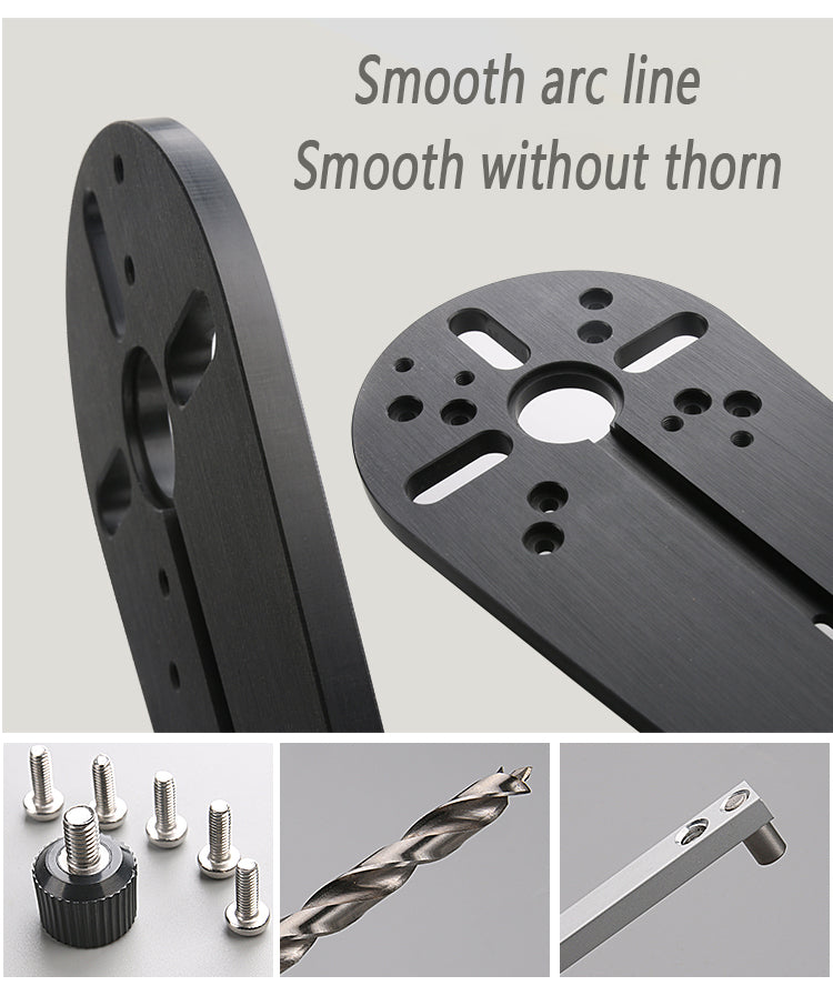 This round milling aid is made of high-quality bakelite. There are four packages to choose from. With independent and innovative design and trimming machine, it can easily complete the operation of making rings and round holes in plates. The edge of the finished product is neat and beautiful, and the size can be adjusted. It is a very convenient and easy-to-use woodworking tool.