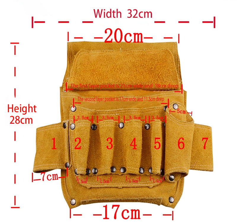 3. This tool bag is made of double-layer suede cowhide all over the body, which improves the quality of the product and is stronger.
