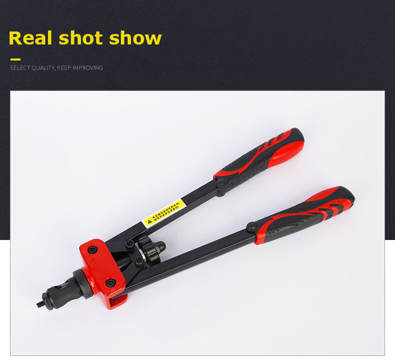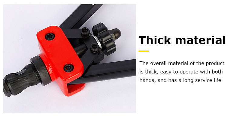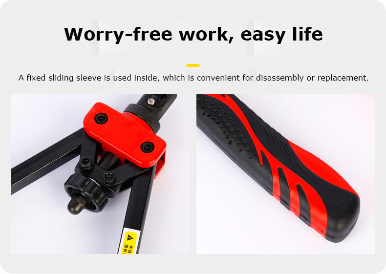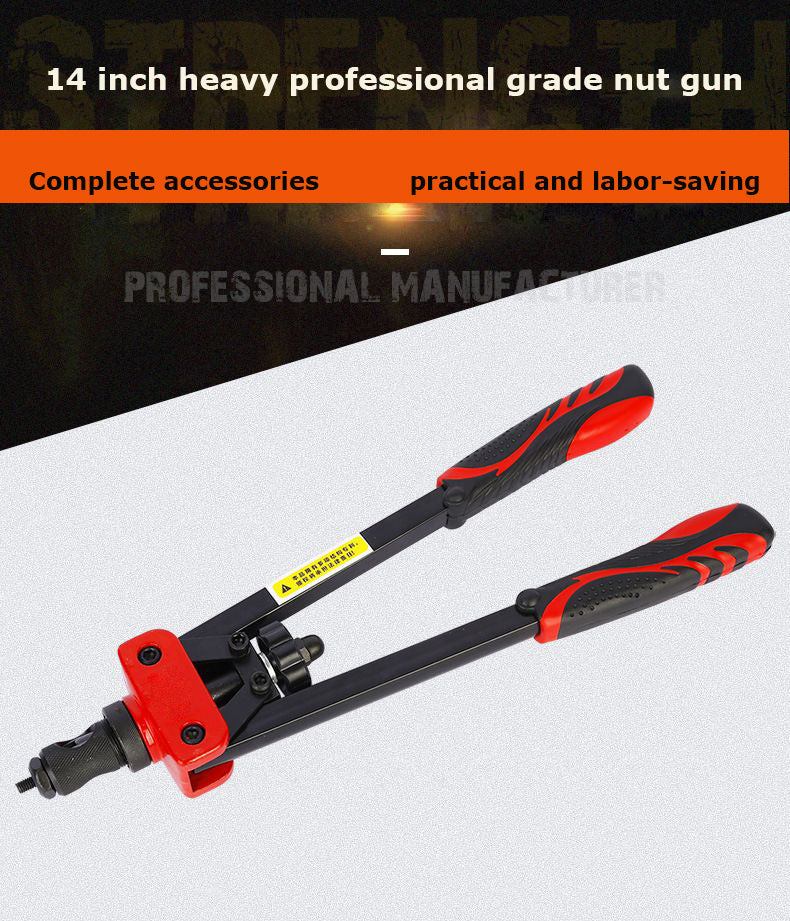 [Design For Saving Energy]: The 14 inch longer carbon steel arm and ergonomic handles with double compound hinges maximizing leverage , it can save more effort than those normal 13 inches rivet nut tool do.