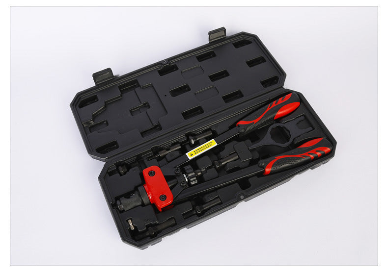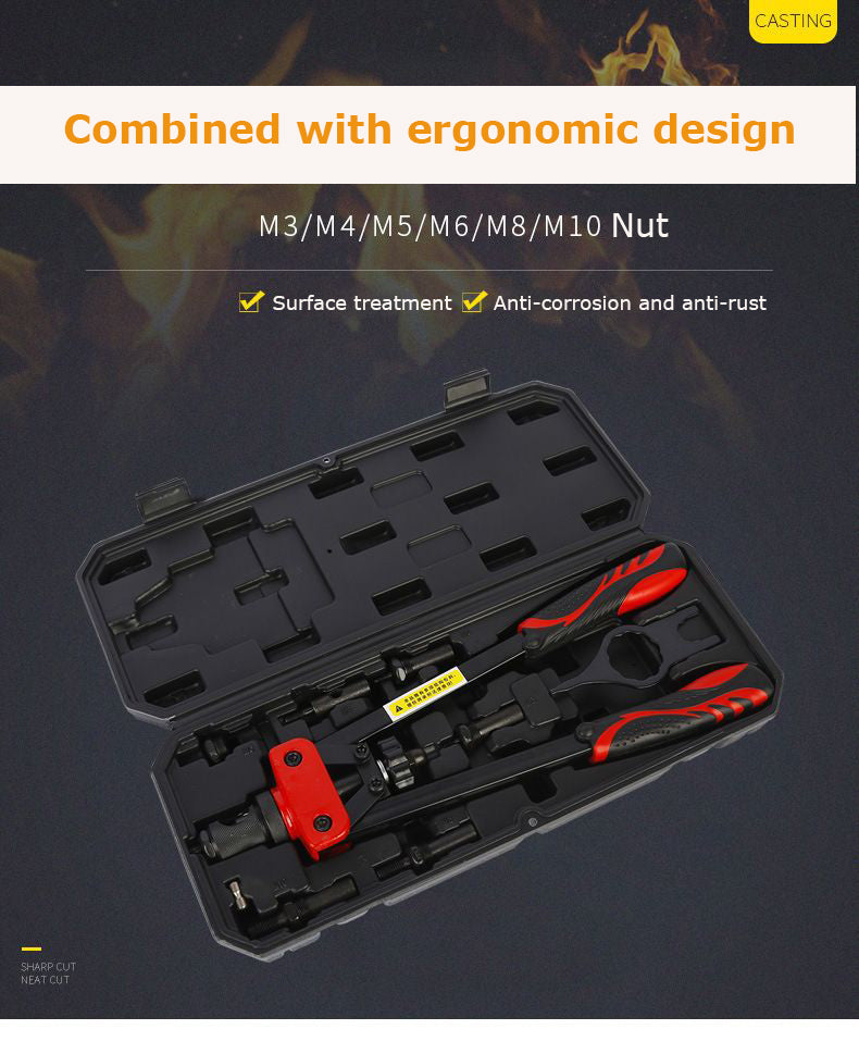 14" RIVET NUT TOOL Hand Blind Riveter ,RIVNUT Riveting Tools with Nut Setting System totally 6mandrels M3 M4 M5,M6,M8,M10 Rivets Nuts. High-strength carbon steel handles makes the rivet nut gun more sturdy and durable, 6 specifications to interchangeable mandrel meet the needs of work. The Rivet Nut Gun is ideal for riveting pipe, aluminum plate, plastic piece, wood, metal work piece in body panels, bicycle attachments, furniture,decorations and more. Ergonomic handles with double compound hinges maximizing leverage and for easy operation. Delicate Shape heavy duty hand riveter is ideal for working in hard-to-reach areas. Great for off-road / Jeep modifications.