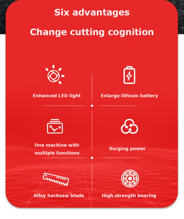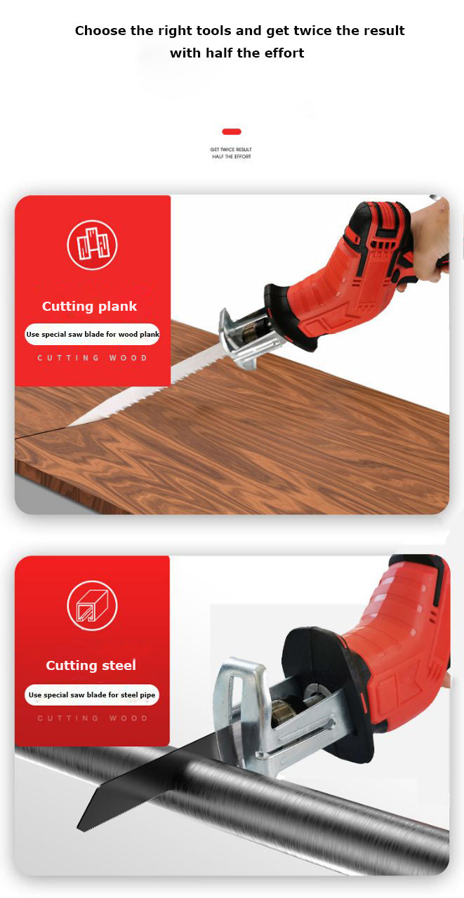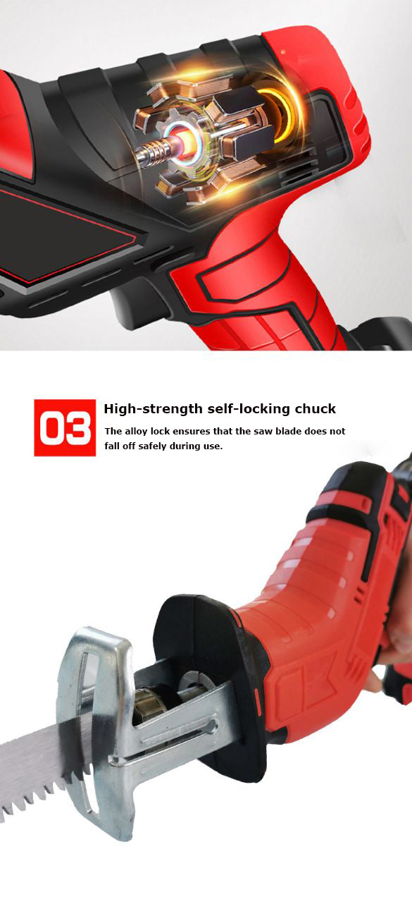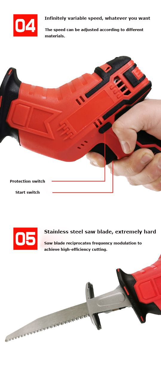 Cordless design - The Reciprocating Saw is designed to be cordless, compact and lightweight, which allows flexibility and freedom of movement when working, easy to use.