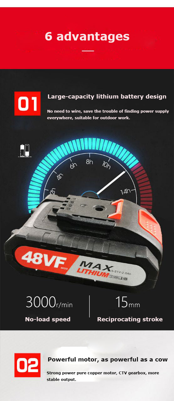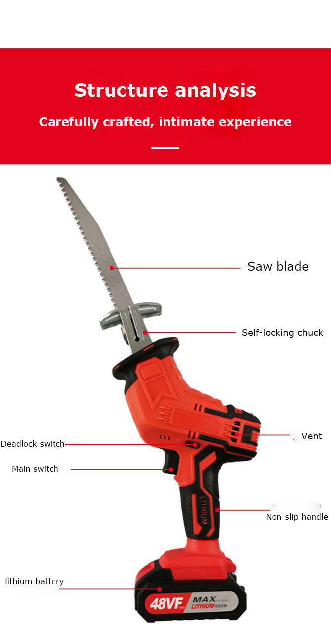 48VF Portable Multi-Function Reciprocating Saw, Cross-border Charging High-Power Household Hand-Held Chainsaw Electric Reciprocating Saw Tool Set
