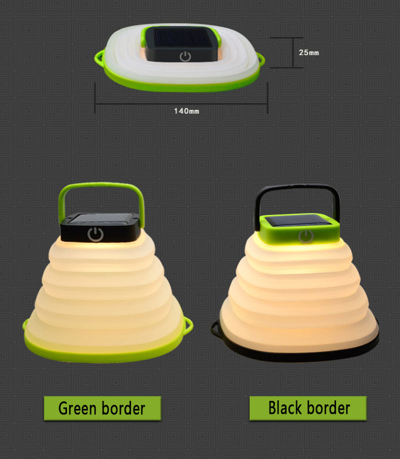 The main body of the solar energy folding lamp is a composite soft rubber material, which has the characteristics of strong corrosion resistance and anti-aging. It works at low temperature and 40 degrees. Equipped with 500mah lithium battery, it can support 1.2wled lighting for 1.5 hours in the first gear and 0.6wled light bead lighting for 3 hours in the second gear.Third gear 0.12W lighting for 15 hours. A 0.25W solar charging panel is fixed above the lamp, which may fill the battery in 10 hours. The side of the lamp is equipped with USB charging interface and USB charging cable, which can be fully charged in 1 hour. It is an environmentally friendly, intelligent, energy-saving, fashionable and portable new lamp.