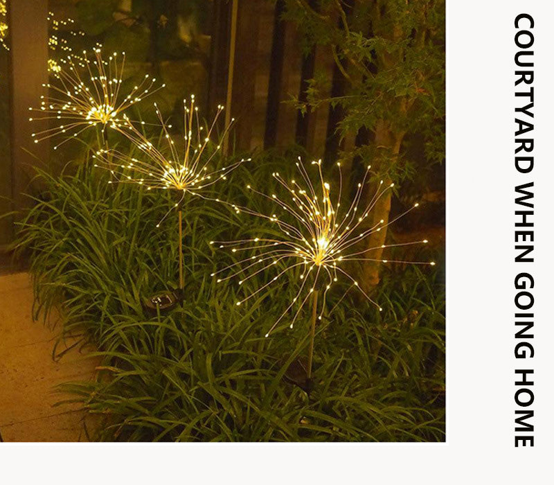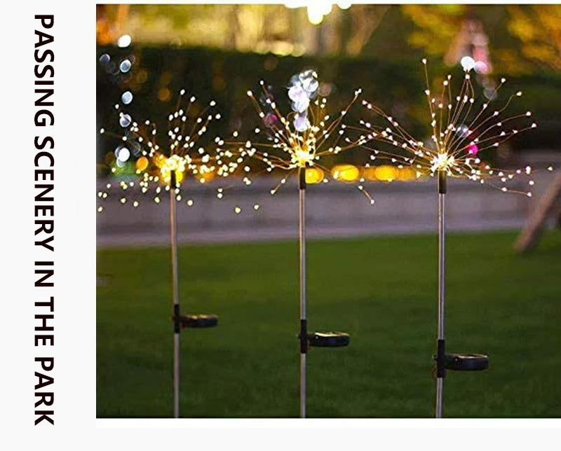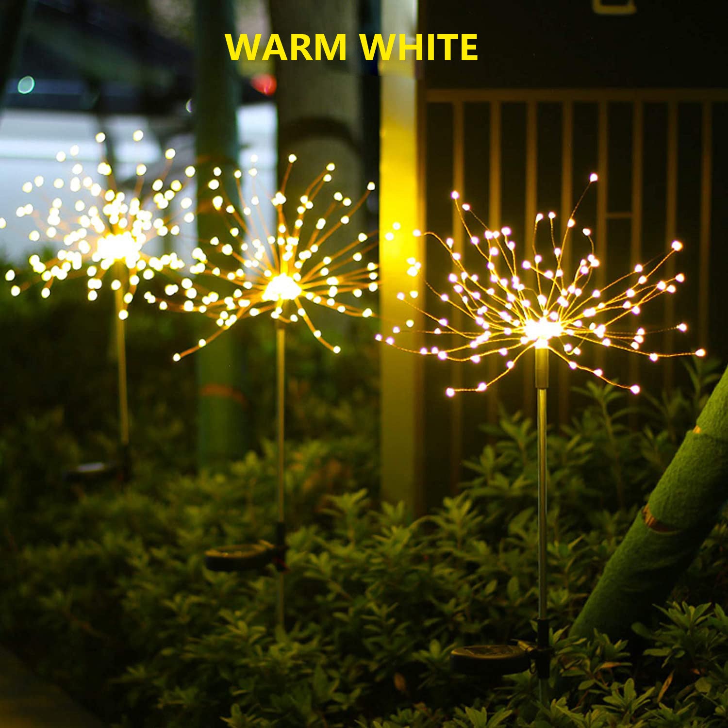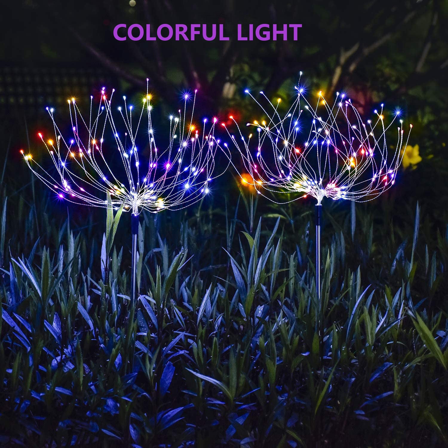 [GARDEN SOLAR LIGHTS DECORATIVE ] These beautiful solar garden firework lights are great addition to you for Garden, Backyard, Front Yard, Patio, Sidewalk, Flower beds, Fences, etc. It’s also the unique decor for your summer, Christmas, Halloween, Thanksgiving and any special occasions. Simply turn the switch "on" and locate them under full sun, it will shine whole night.