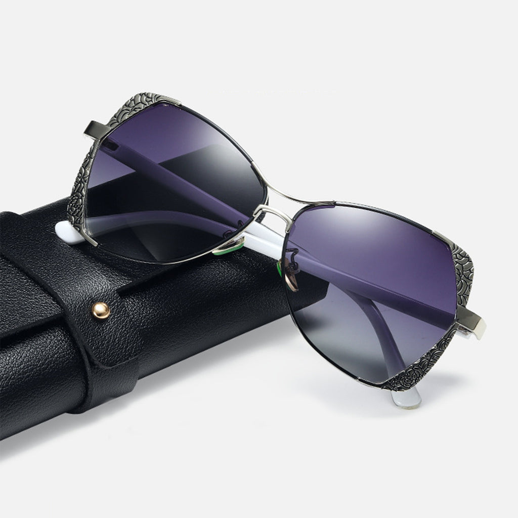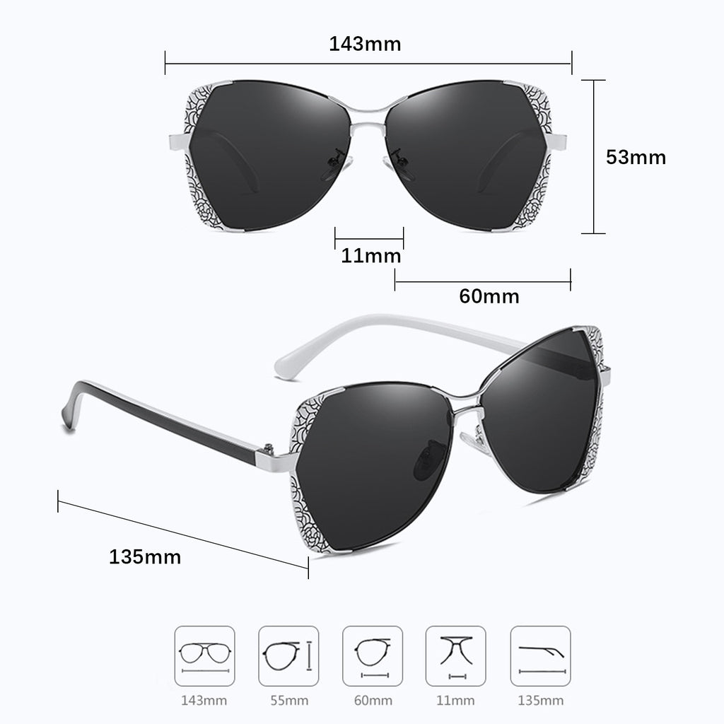 NALANDA Black Women's Polarized Aviator Sunglasses with Carving Pattern UV400 HD Lens Metal PC Frame Glasses For Outdoor Travel Driving Daily Use