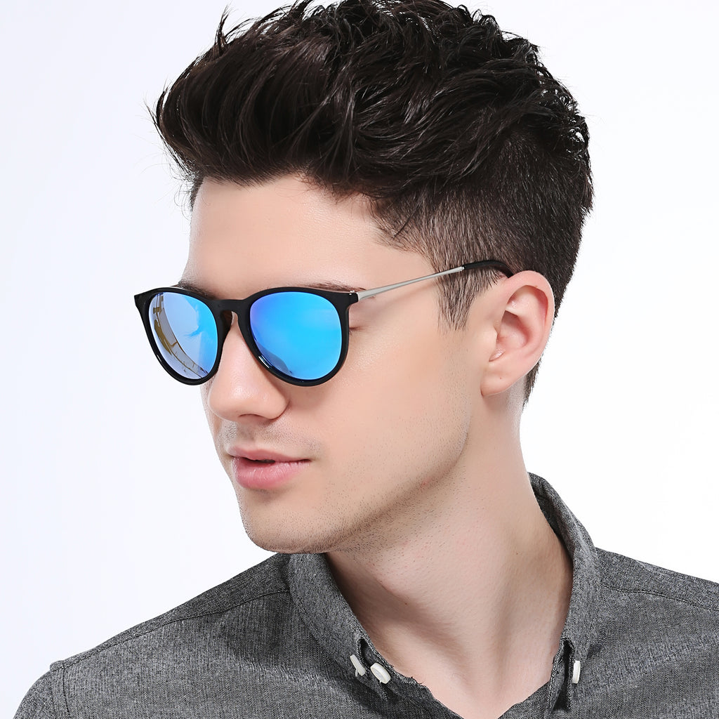 NALANDA Blue Polarized Aviator Sunglasses With UV400 Mirrored Lens Metal PC Frame, Men Women Glasses For Outdoor Travel Driving Daily Use Etc