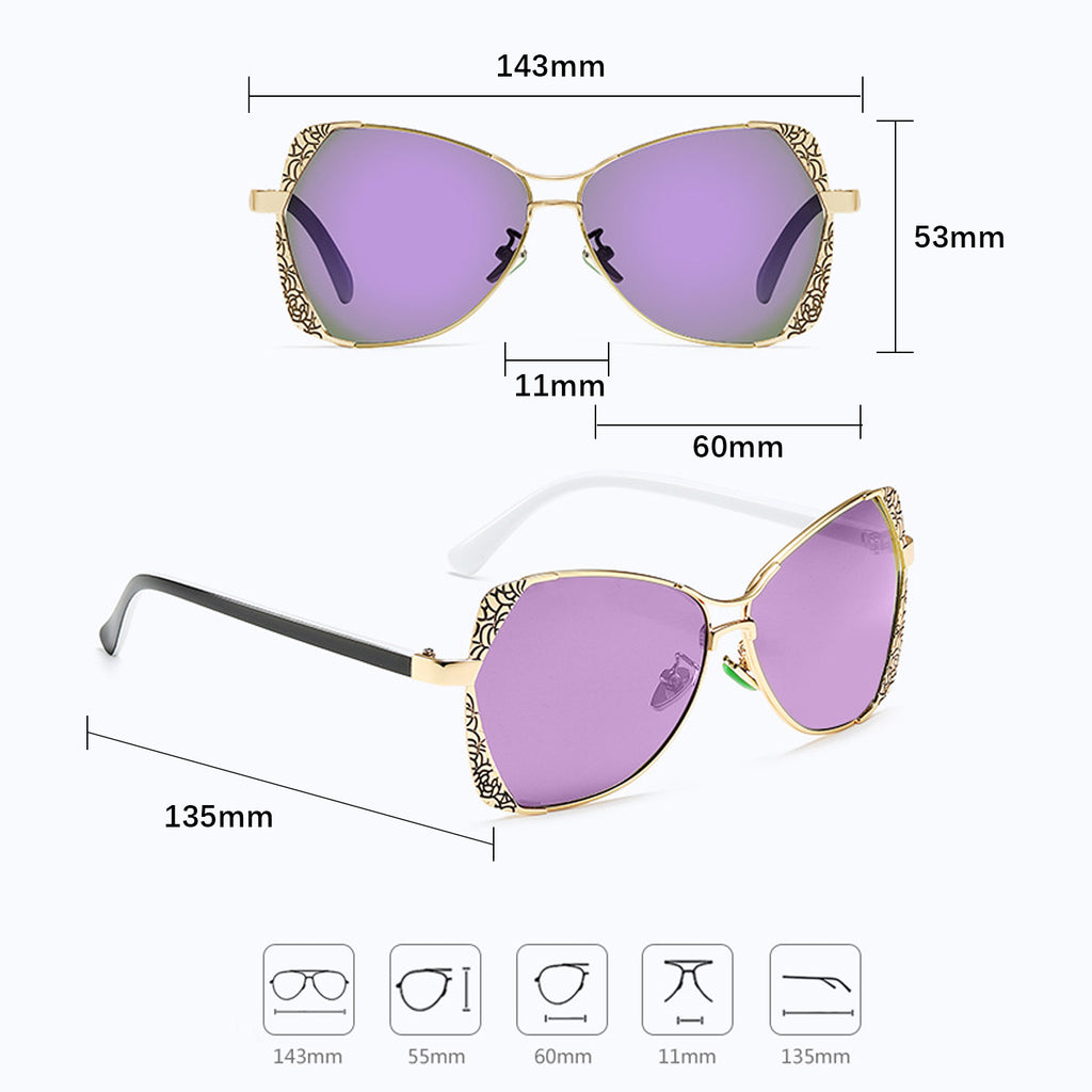 NALANDA Purple Women's Polarized Aviator Sunglasses with Carving Pattern UV400 HD Lens Metal PC Frame Glasses For Outdoor Travel Driving Daily Use