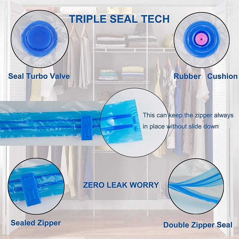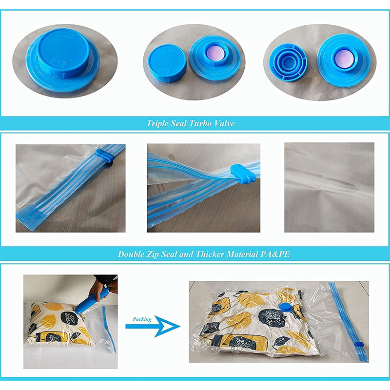 [Professional Design & Perfect Work]: The unique double seal zipper and triple-seal turbo valve are designed to get all the air out of the bag and nil air back in! We claim full responsibility for all leaking in correct use.
