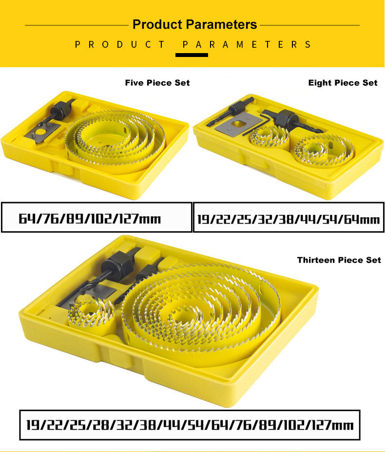 13pcs (19-127mm) Hole Saw Cutter Kit Industrial Grade Hole Cutter Set With Wood Core Drill Bit Mandrels Hex Key And Install Plate Hole Cutting Tools