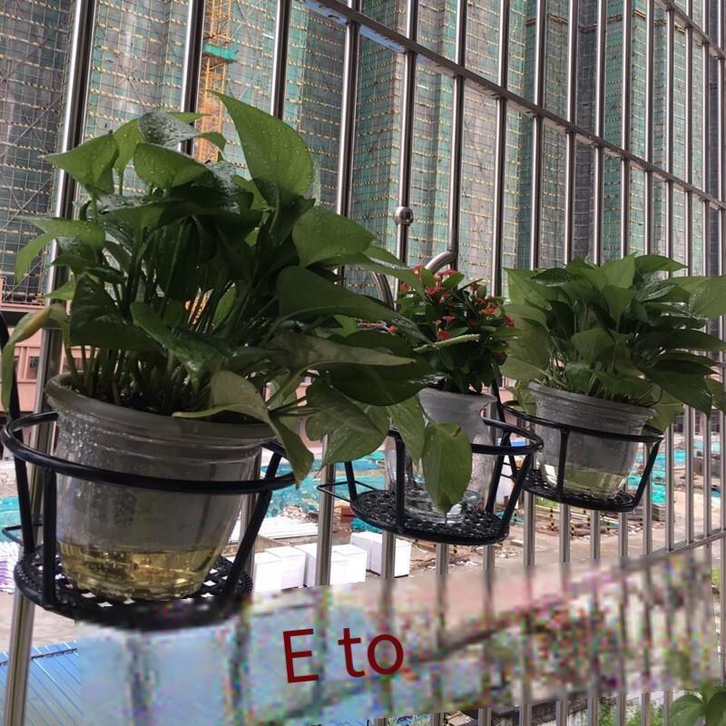 6 Pieces Balcony Flower Rack Hanging Railing Windowsill Single Flower Rack Protective Fence Hanging Flower Pot Indoor Shelf Decoration Shelf Hanging Blue-green Basket Flower Rack Large Single Black