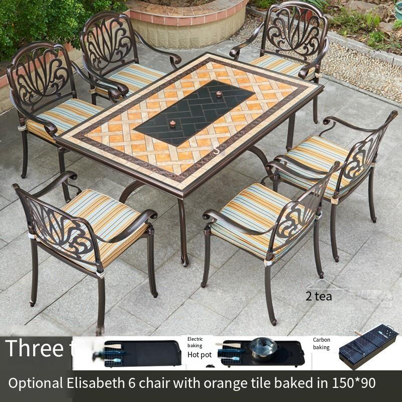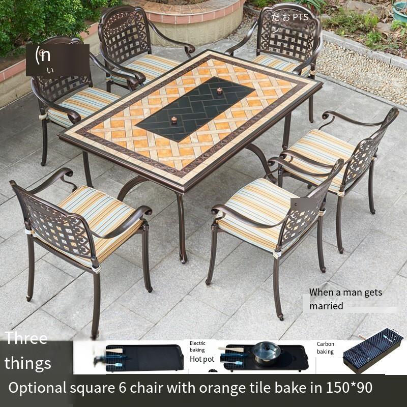 Cast Aluminum Outdoor Barbecue Table And Chair Aluminum Table And Chair Outdoor Open-air Grid 4 Chairs With Orange