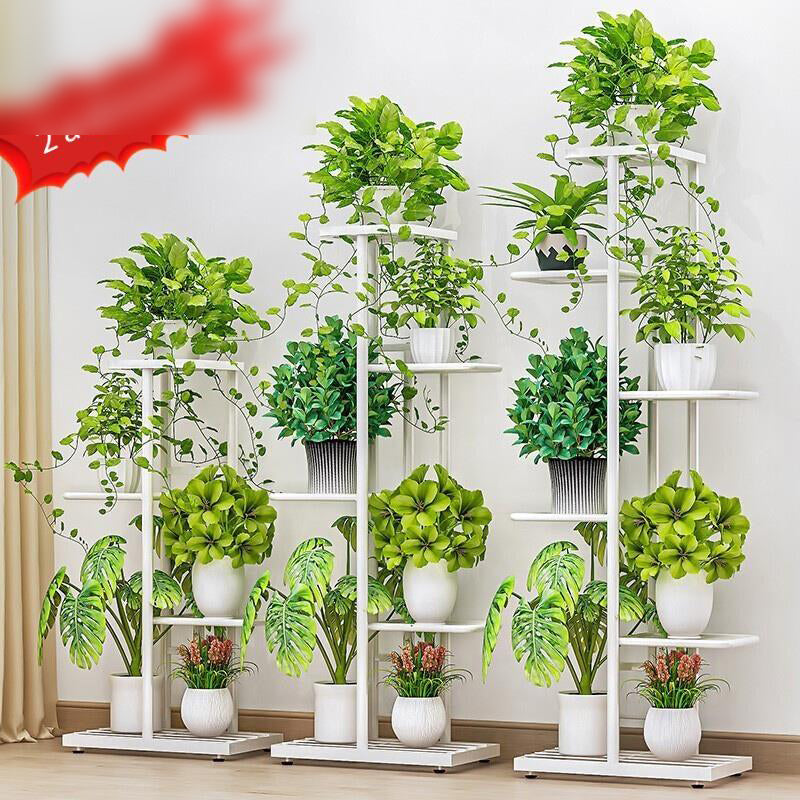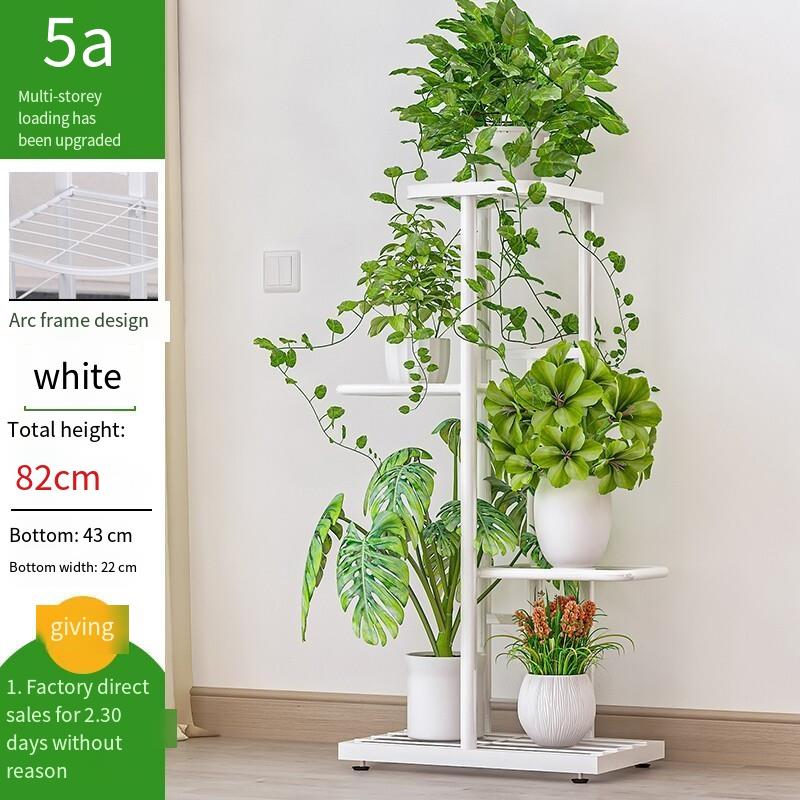 6 Pieces Flower Rack Pot Nordic Indoor Household Balcony Decoration Rack Iron Art Living Room Storage Layer Simple Multi-layer Hanging Rack Green Rose Rack White-5 Basin [height 82cm]