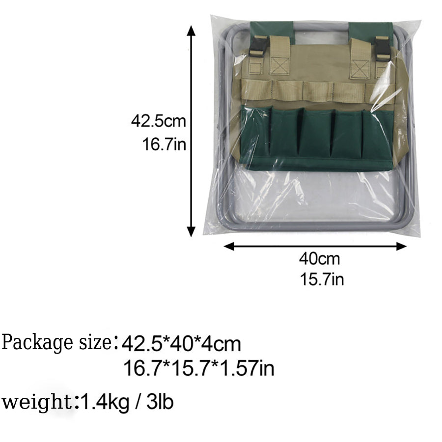 【 2 IN 1 GARDEN TOOLS SET INCLUDES】1:Heavy duty foldable stool, Measures:13.7(L) x 11(W) x 12.2(H) inch.2:Detachable Storage Bag, You can easily assemble or disassemble this bag from the stool
