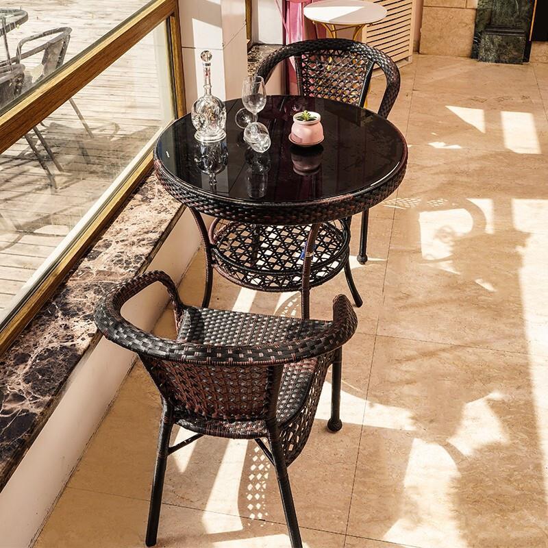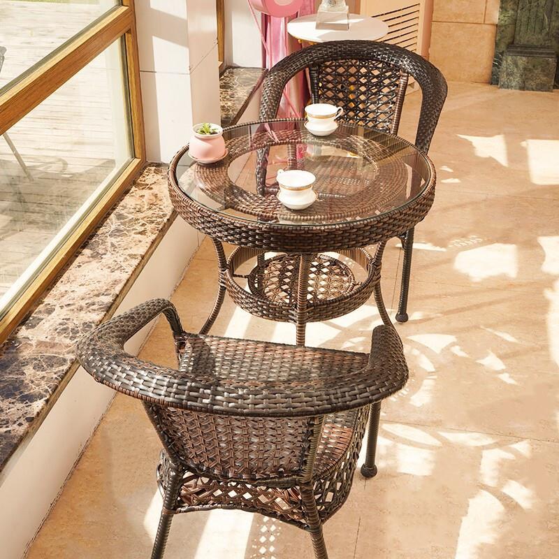 Furniture Rattan Chair Three Piece Set Balcony Small Tea Outdoor Courtyard Table And Chair Household Leisure Rattan Weaving Terrace Teng Chair Elderly Armchair