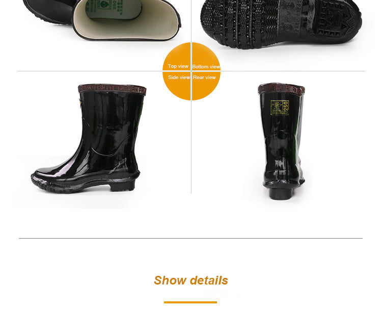 100% waterproof protection - Adult mid-calf rain boots is seamless construction outdoor boots, it keeps feet dry by preventing water penetration. So whether you are headed to work or hitting tough terrain you get to your destination with dry feet.
