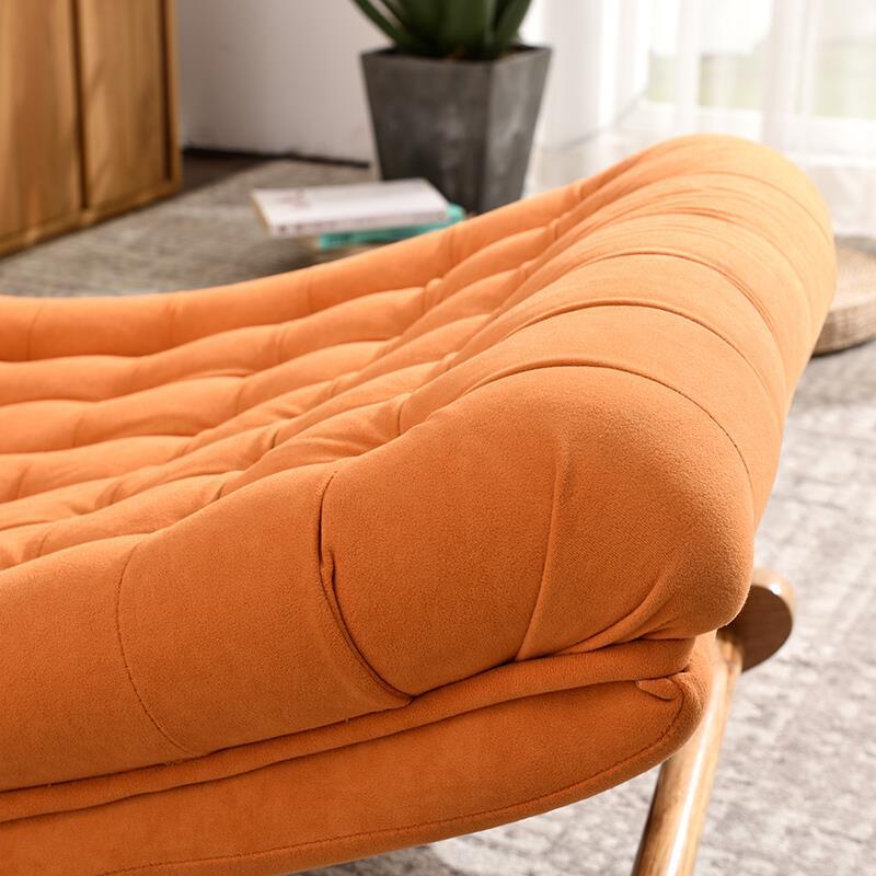Lazy Sofa Single Nordic Rocking Chair Recliner Adult Nap Home Leisure Living Room Leisure Chair Orange Chenille + Footstool
