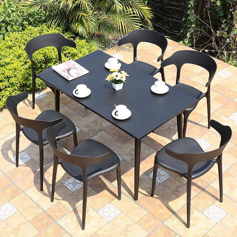 Outdoor Table And Chair Courtyard Garden Terrace Outdoor Tea Table Leisure Iron Table And Chair Combination Outdoor Coffee Restaurant Milk Tea Table And Chair 4 + 1 (with 80cm Black Silk Square Table)