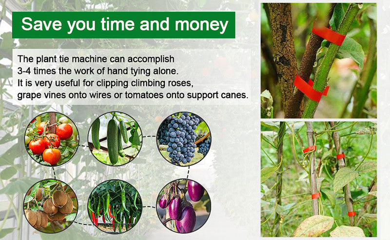 【Time saver】The plant tie machine can accomplish 3-4 times the work of hand-tying alone. It is very useful for clipping climbing roses, grape vines onto wires or tomatoes onto support canes.