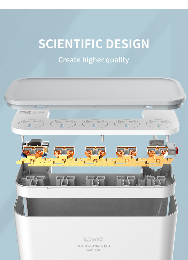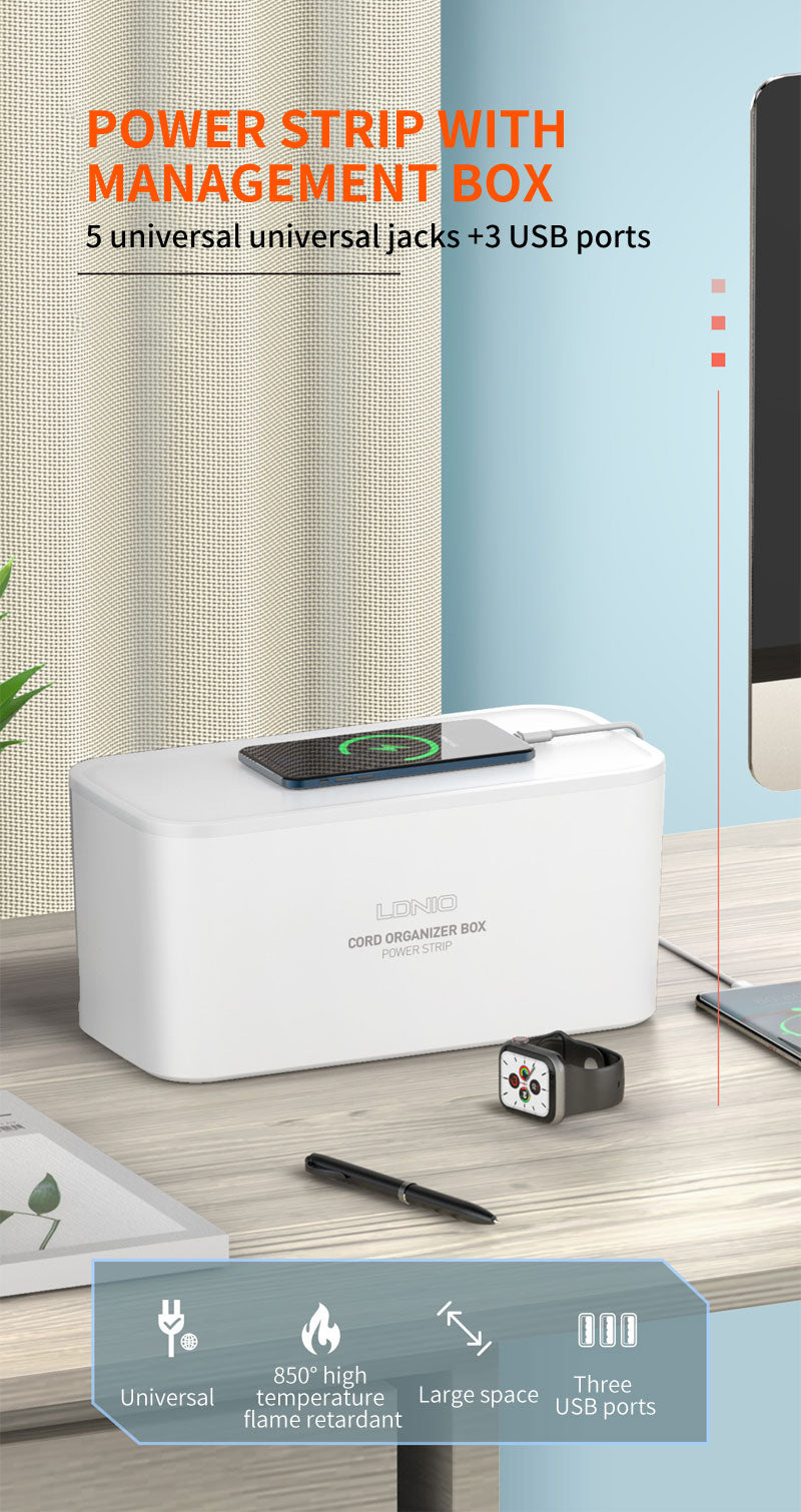Power Strip & Cable Management Box expands your office and home’s connectivity giving ultimate convenience for powering computer electronics, home entertainment systems, digital USB devices, and more. Meanwhile, the organizer box can hide your plugs, transformers, and cables perfectly, making your places in good order.