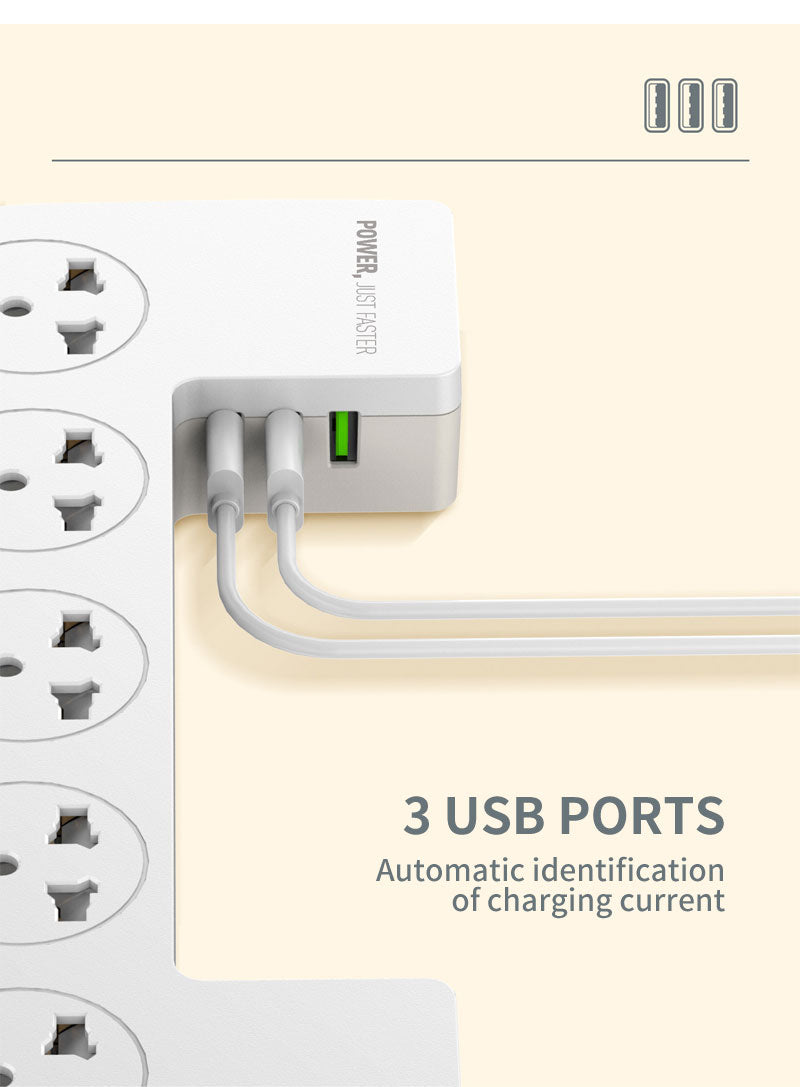 5 Universal Outlets & 3 USB ports】 This power strip has 5 universal outlets suit for UK power adapters, 3 USB ports can intelligently charge your USB devices WITHOUT a variety of converters, save your space and make your desktop organized. Ideal for charging multiple devices together ( PC, Monitor, Android Box, TV, Laptop, Smartphone, Earphones, Bluetooth speakers, and more.) in office and home. 2 meters thicker power cord provides sufficient cord length which is suitable for daily use.