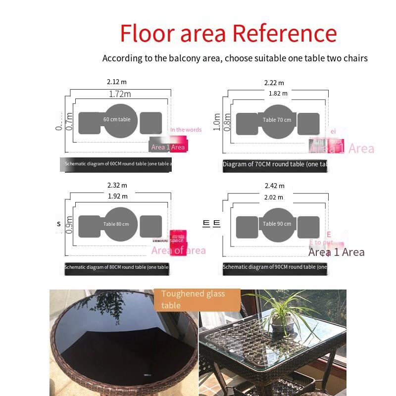 Rattan Chair Tea Table Three Piece Set Balcony Household Leisure Weaving Small Outdoor Cafe Dining Table And Chair Combination 65 Integrated Square Table + 2 Chairs (special Price)