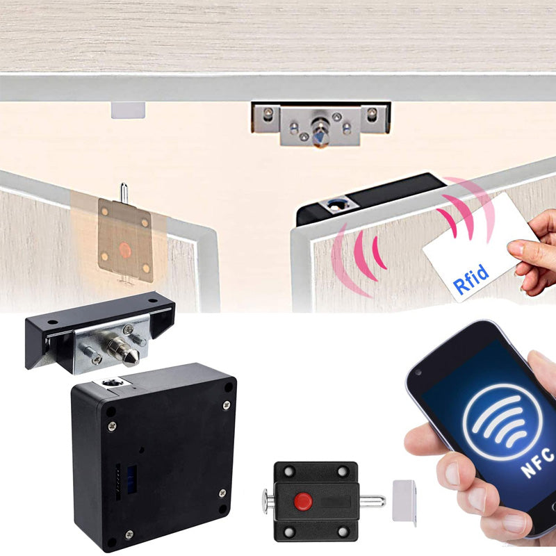 Smart NFC RFID Locks, Electronic Cabinet Lock, Hidden DIY Cabinet Lock with Slide Latch Lock for Double Door Cabinet Drawer Wooden Cupboard