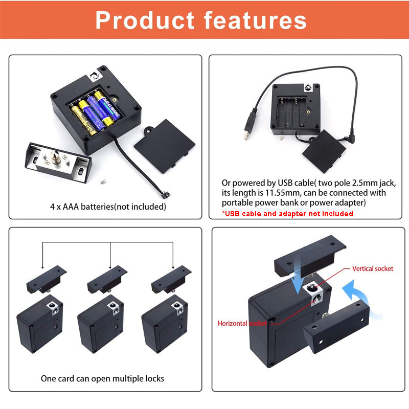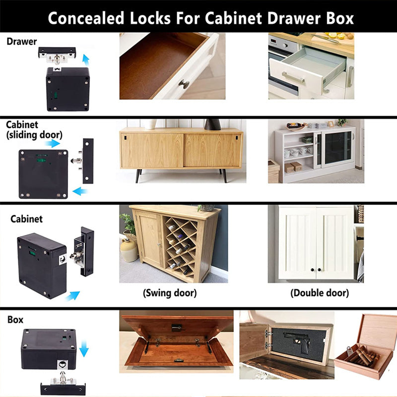 Hidden Sturdy Lock】No need to drill holes, No damage to your cabinet. Power Supply: 4*AAA Batteries(Not Included !!!)or USB powered.