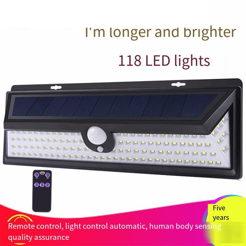 Solar Lamp Outdoor Courtyard Lamp Household Waterproof Three-sided Luminous Human Body Induction Wall Lamp Street Lamp Remote Control White Light