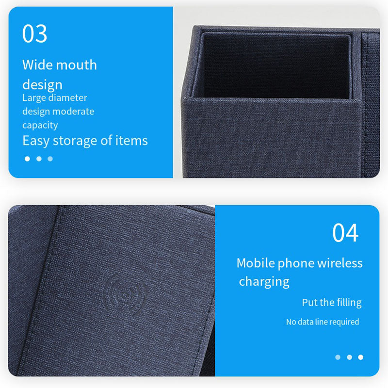【Suitable for many occasions】 Very suitable for placing all pens, pencils, scissors, mobile phones, note papers, cards, etc. Easily organize the clutter on the desk. It is very suitable for company meeting rooms, classrooms, restaurants, hotel living rooms equipped with multi-functional wireless chargers, keeping them tidy anytime, anywhere.