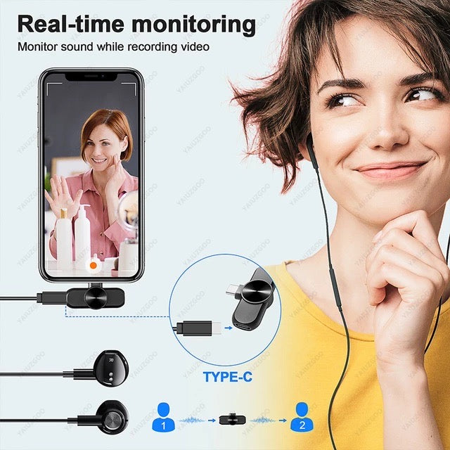Wireless Microphone Lavalier Professional Mini Portable Noise Reduction Audio Video Recording Live Broadcast For iPhone Type-C