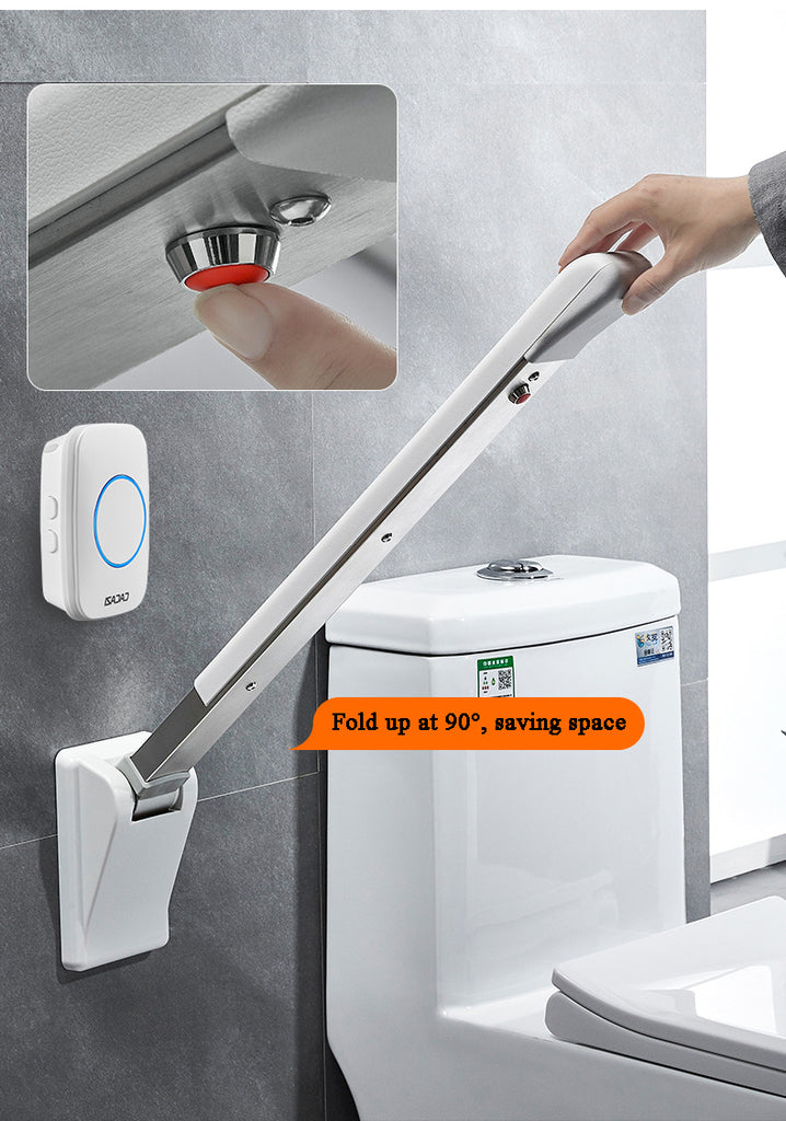 (With Calling Bell) Grab Bars for Bathroom 90° Upturn Folding Safety Grab Bar Anti-shake Toilet Handrail Widened and Thickened Carbon Steel Base PP Plastic Handle
