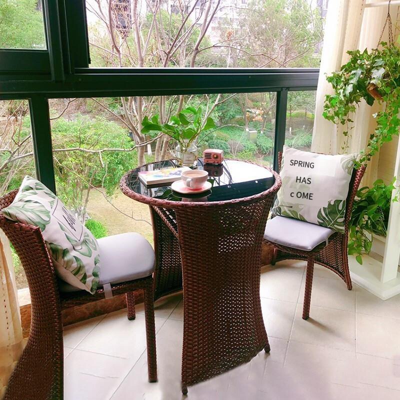 Balcony Table Chair Rattan Chair Three Piece Set Modern Simple Outdoor Leisure Chair Table Chair Combination Creativity Nordic Small Tea Table Dark Brown