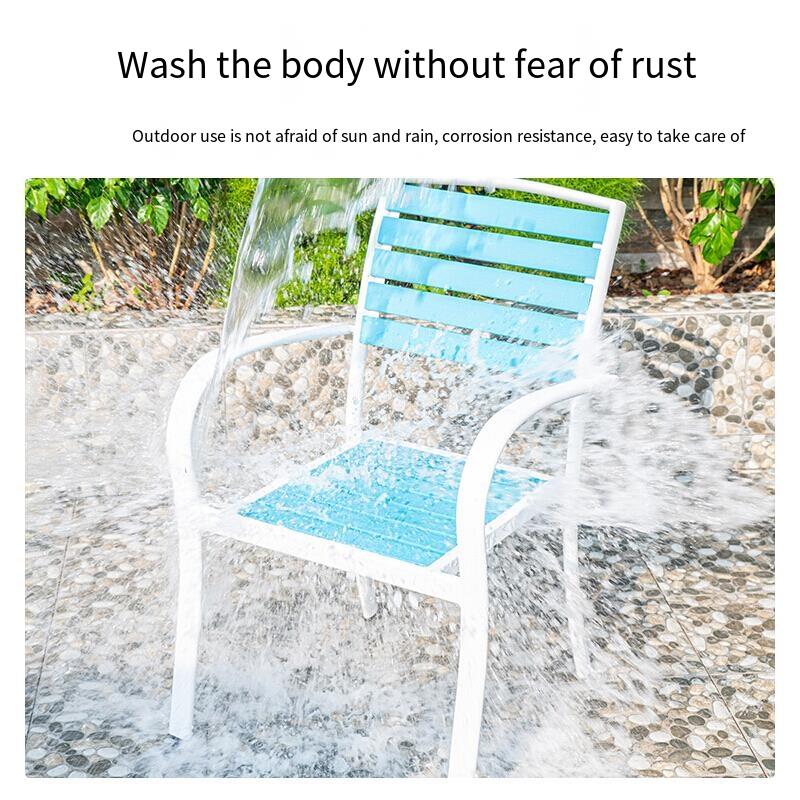 Outdoor Plastic Wood Balcony Table And Chair Combination Leisure Table And Chair Outdoor Courtyard Konis Chair * 4 + Plastic Wood Cross Mosaic