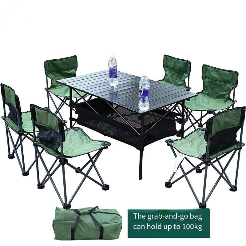 Outdoor Stall Portable Folding Table And Chair Set 4 People Multi Person Folding Table And Chair Barbecue Camping Self Driving Travel Equipment Set