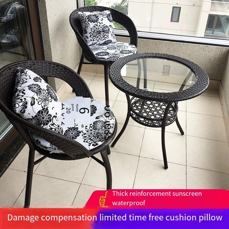 Outdoor Tables And Chairs Courtyard Balcony Tables And Chairs Rattan Chair 3 Chairs 1 Table With Cushion Pillow