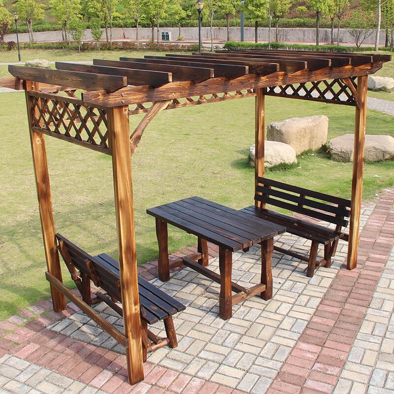Pavilion Outdoor Courtyard Simple Small Outdoor Grape Trellis Antiseptic Wood Tables And Chairs Wooden House Garden Shelf Solid Wood Pavilion Gallery Table