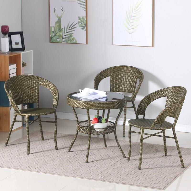 Rattan Chair Three Piece Set Balcony Tables And Chairs Small Tea Table Leisure Courtyard Combination Without Cushion Pillow Two Chairs One