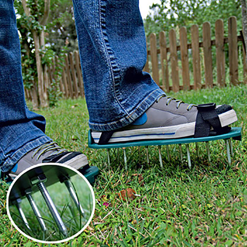 Build a Healthier LawnsThe grass nail shoes have 26 heavy-duty metal 42 mm spikes.it can easily and fast lawn aeration, helping grass absorb water, nutrients and air from the deep roots to make your lawn greener and healthier